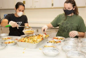 Our weekly Thursday night “Feel the Warmth” Community Supper Program also closed down temporarily, due to Covid and was replaced with our “Meal Slide” Program. Prepared meals are safely distributed to those in need, while practicing social distancing, in a safe way, by sliding meals down a 6 foot table, into the trunk of a car or into the hands of a walk up. Every Thursday, there are 250 home-cooked, hot meals provided to 4 different transitional housing apartment buildings and other local neighbors in need. Another 235 frozen-meals or sandwiches are provided on Fridays – 485 total Meals – all through the Drive-Thru or Walk-Up Meal Slide Program at Nourish Bridgeport. “Feel the Warmth” has taken on a whole new population in need.