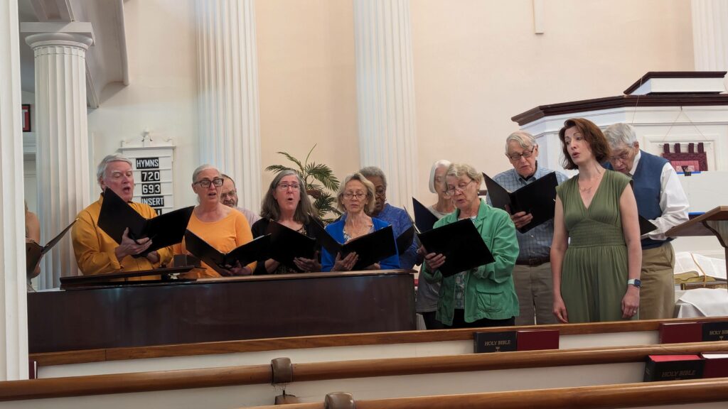 During the summer, a Summer Choir is offered once a month for interested singers. The choir rehearses on Sunday, 9:15–9:45am, then sings for the 10:00am service. Special music for the summer services is also provided by musicians from the congregation and area.