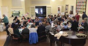 Gathering around a table at the church