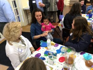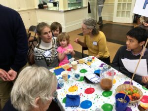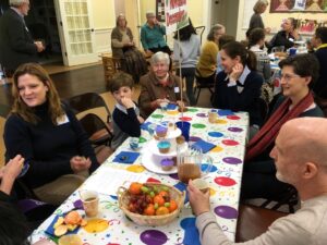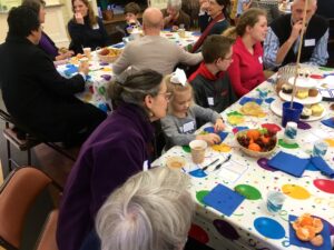 Gathering around a table at the church